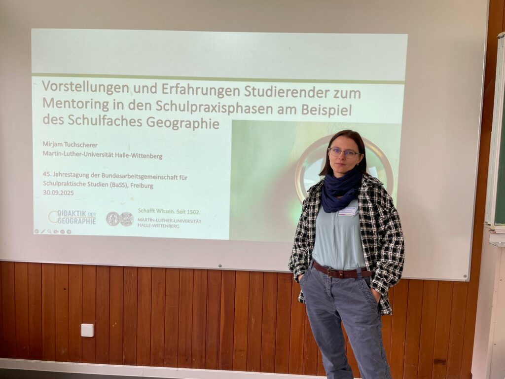Im Rahmen der Tagung präsentierte sie einen Vortrag mit dem Titel „Vorstellungen und Erfahrungen Studierender zum Mentoring in den Schulpraxisphasen am Beispiel des Schulfaches Geographie“.