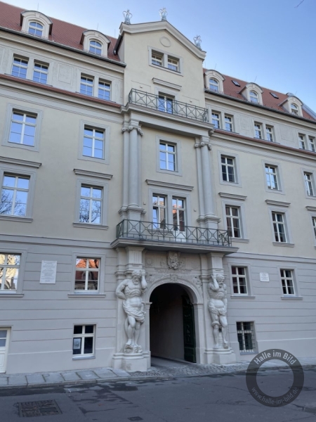 Das sogenannte „Riesenhaus“ hätte ebenso zur Keimzelle der Universität werden können, denn auch hier sollte eine Ritterakademie entstehen. Erbaut wurde es 1697 durch Friedrich Madeweis (1648-1705). Hoch und vielfältig begabt, studierte er Theologie, Jura, Medizin, Philosophie und Mathematik in Jena, wurde 1681 zum königlich-brandenburgischen Hofpostmeister ernannt und sorgte für die Grundlagen effizienter Postverbindungen. Mit dem Bau des Riesenhauses verband er die Absicht, eine Akademie, ein „Athenaeum Salomoneum“, zu gründen, was jedoch durch die gleichzeitig erfolgende Universitätsgründung scheiterte.