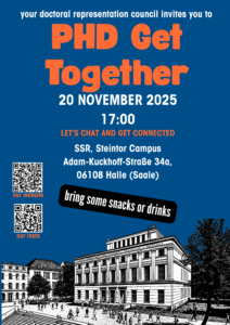 But it’s also time for us to celebrate these two years a little and hand over the baton to the next generation. We would like to invite all of you, the doctoral students at MLU, to a small get-together to mark the occasion. We want to give you an opportunity to network as doctoral candidates, discuss common challenges and problems of your PhD phase and generally get into conversation. We also ask you to approach us with specific concerns for the next two years. And for those of you who are just starting your PhD, there will be information about the role of the PhD student representatives and how you can get involved.