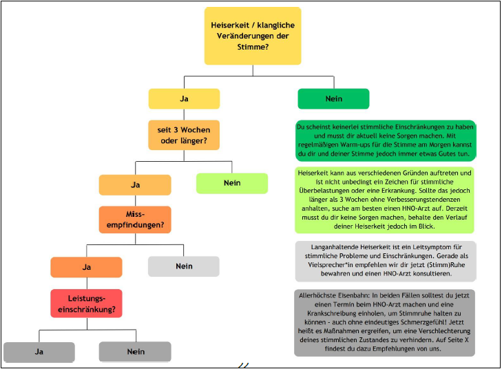 3. Leistungseinschränkung. Beispiel: Du hast seit einiger Zeit zunehmend Schwierigkeiten den schulischen Alltag stimmlich zu meistern. Spätestens am Freitag ist deine Stimme matt und angestrengt.